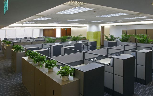 把室內綠化作為主要陳設并成為視覺中心,以其形、色的特有魅力吸引人們。這種布置方式在具有較大空間的辦公空間中較為常用。在較為緊湊的辦公空間內,多采取邊角點綴的布置方式。辦公室的角落是最難以利用的地方,選擇角落作為植物設置點,不但能起到填補空間的作用,而且使室內煥發(fā)出勃勃生機。